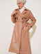 Tek Düğmeli Kuşaklı Deri Trençkot Latte