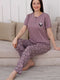İki Düğmeli Desenli Viskon Pijama Takımı Leylak