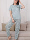 İki Düğmeli Desenli Viskon Pijama Takımı Mint