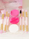 6'li Pudra Süngerli Makyaj Fırça Seti Pembe