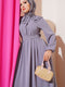 Çift Bebe Yaka Kuşaklı Elbise Gri