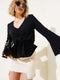 Önü Bağlamalı V Yaka Bluz Siyah
