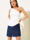 Tek Omuz Yan Tokalı Bluz Beyaz