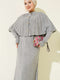Düğmeli Pelerinli Triko Elbise Takım Gri