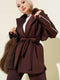 Kol Fermuarlı Yaka Kürklü Scuba İkili Takım Kahve