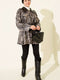 Deri Yaka Garnili Leopar Desenli Ceket Taş