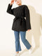 Fermuarlı Kuşaklı Keçe Ceket Siyah