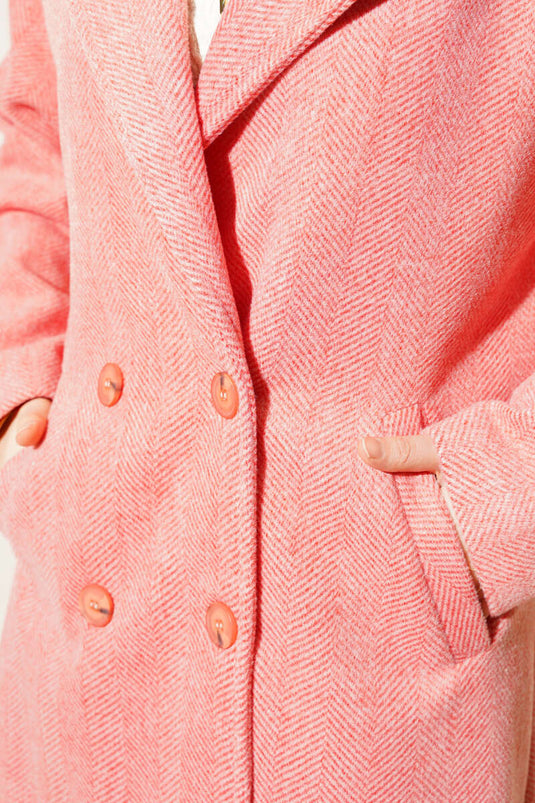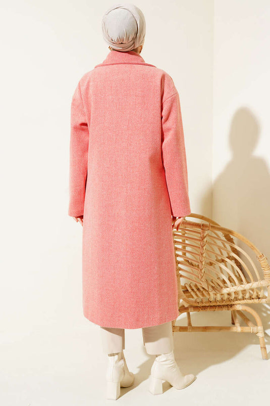 İnce Zikzak Çizgili Kaşe Kaban Gül Kurusu