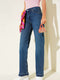 Paça Püskül Detaylı Kot Pantolon Mavi