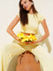 Yan Büzgülü Gofre Crop İkili Takım Sarı