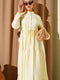 Bel Tünelli Düğmeli Ağaç Kabuğu Elbise Sarı