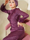 Bileği Tül Detaylı Jakar Elbise Magenta