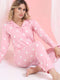 Kalp Süslemeli Düğmeli Süet Pijama Takımı Pudra