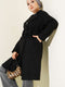 Kruvaze Yaka Belden Kuşaklı Kaban Siyah