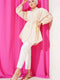 Robalı Balon Kol Kuşaklı Gömlek Bej