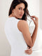 Şahinler Bayan Likralı Kolsuz Dik Yaka Body Beyaz